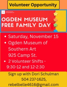NCJW Volunteer Opportunity at Ogden Museum Free Family Day