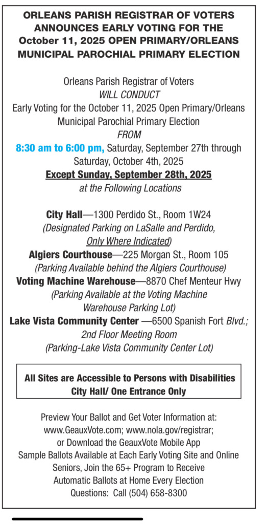 *EARLY VOTING SITES IN ORLEANS PARISH*